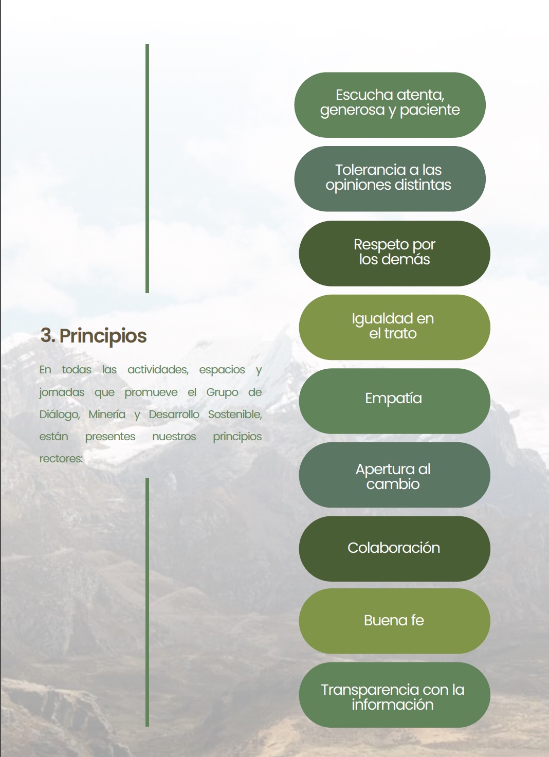 Misión: Construir confianza, promoviendo propuestas y espacios de colaboración a través del diálogo multiactor en torno al desarrollo sostenible, para una minería social y ambientalmente responsable.